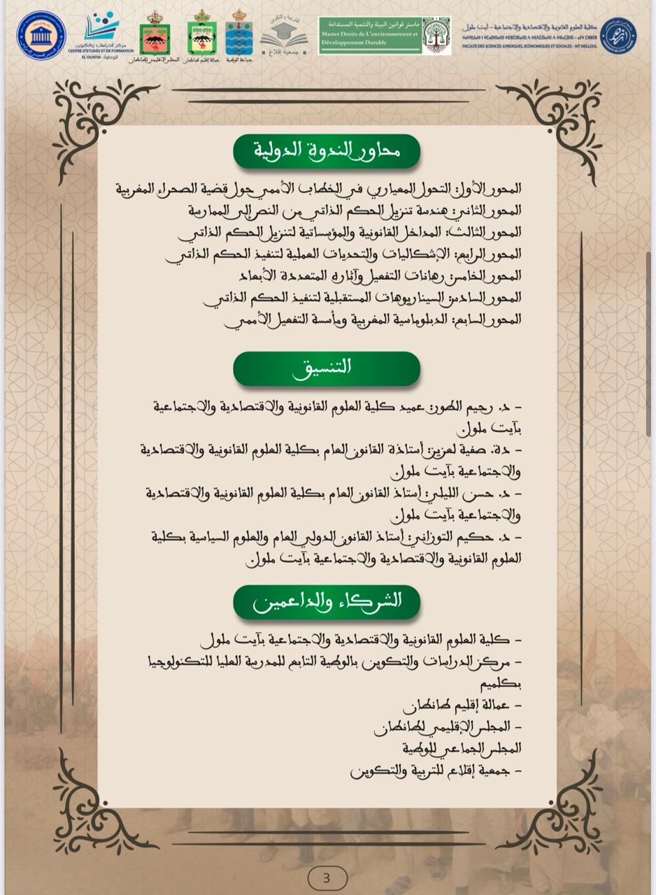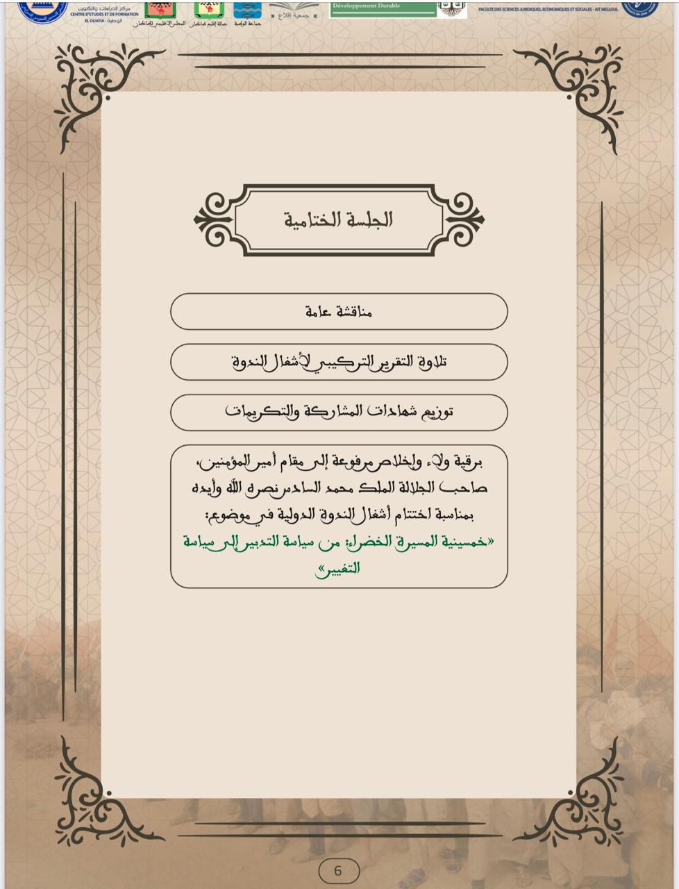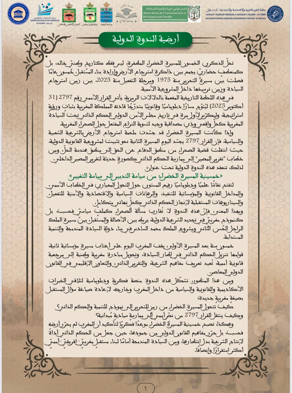 • Lire la suite de ندوة دولية في موضوع "خمسينية المسيرة الخضراء" من سياسة التدبير إلى سياسة التغيير