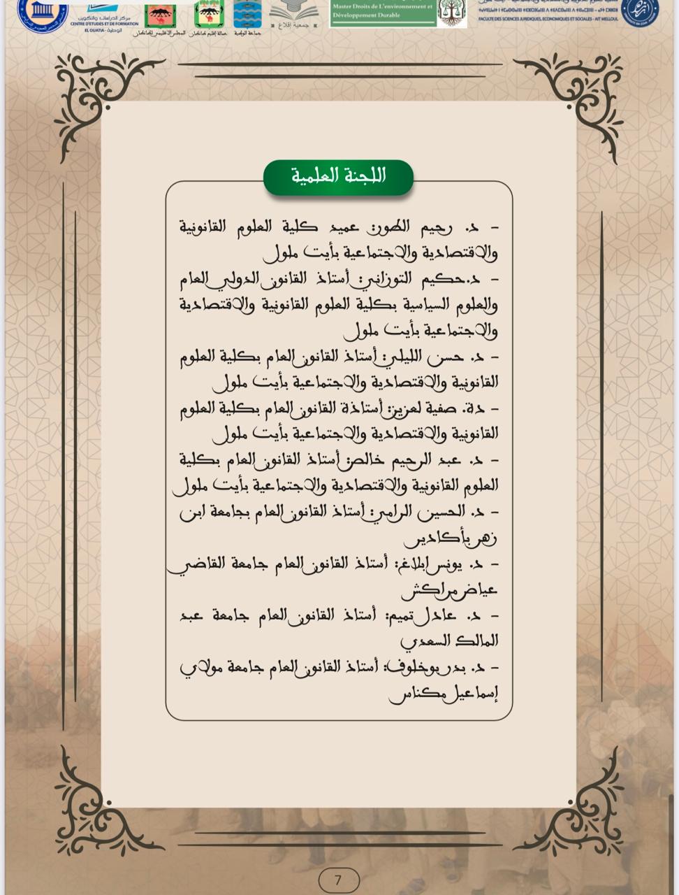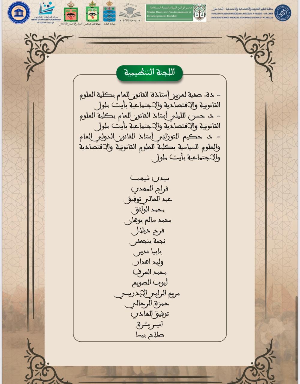 Merci au directeur du laboratoire de recherche LIRDEG et coordonnateur du master CCA Dr. Rachid TATOUTI et à la présidente du comité d’organisation du colloque Dr.Habiba ABOU-HAFS pour tous les efforts déployés afin de réussir ce colloque international d’une grande ampleur.